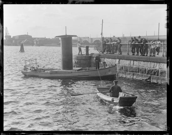 Rotor ship next to USS Constitution. Tug 'Iwana'. |