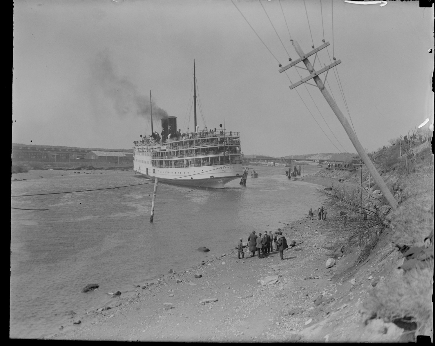 Steamer 'New York' runs aground in Cape Cod Canal near Sagamore Bridge