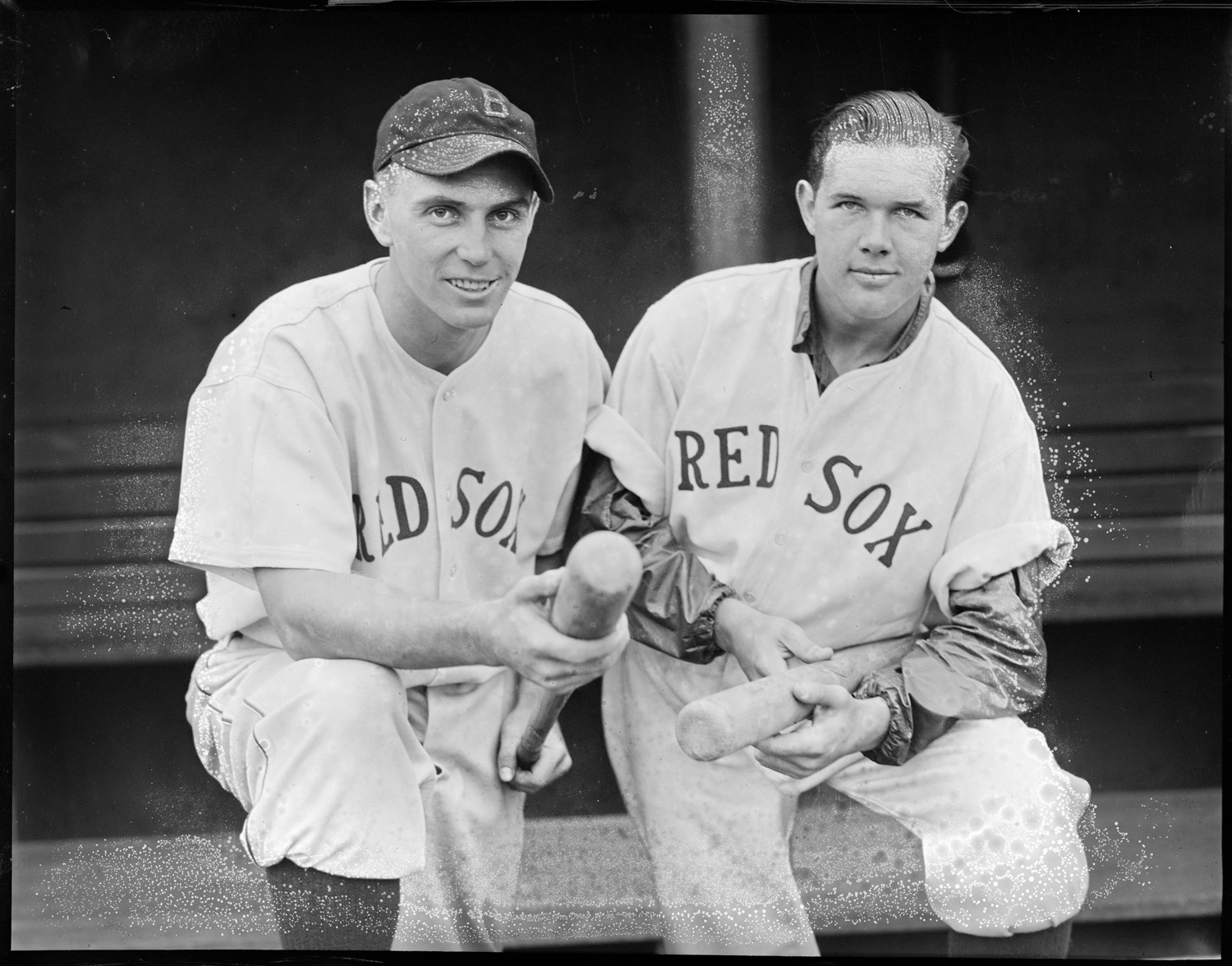 Two Red Sox players on dugout steps