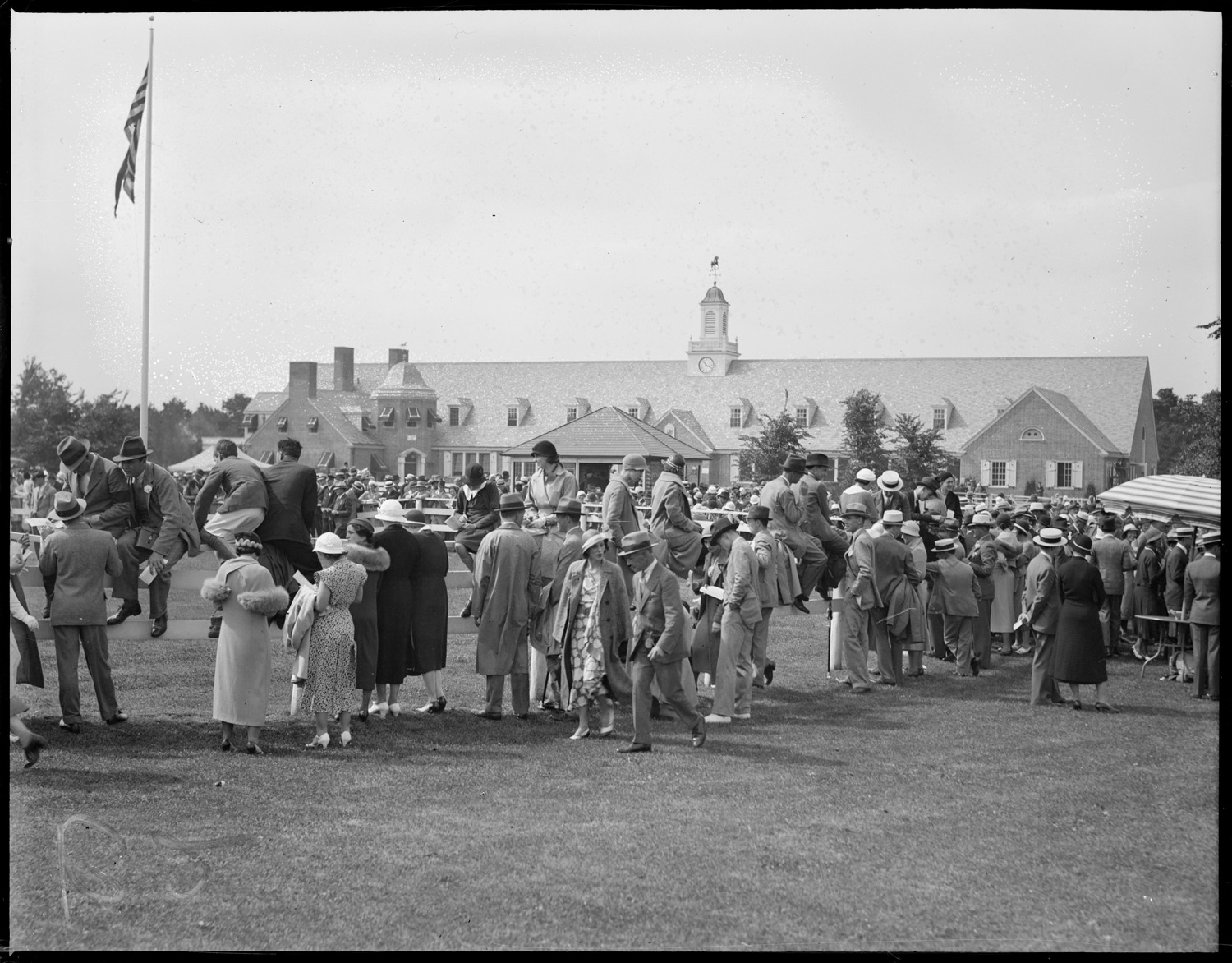 Crowds arriving at Rockingham Track by train, Salem, N.H.