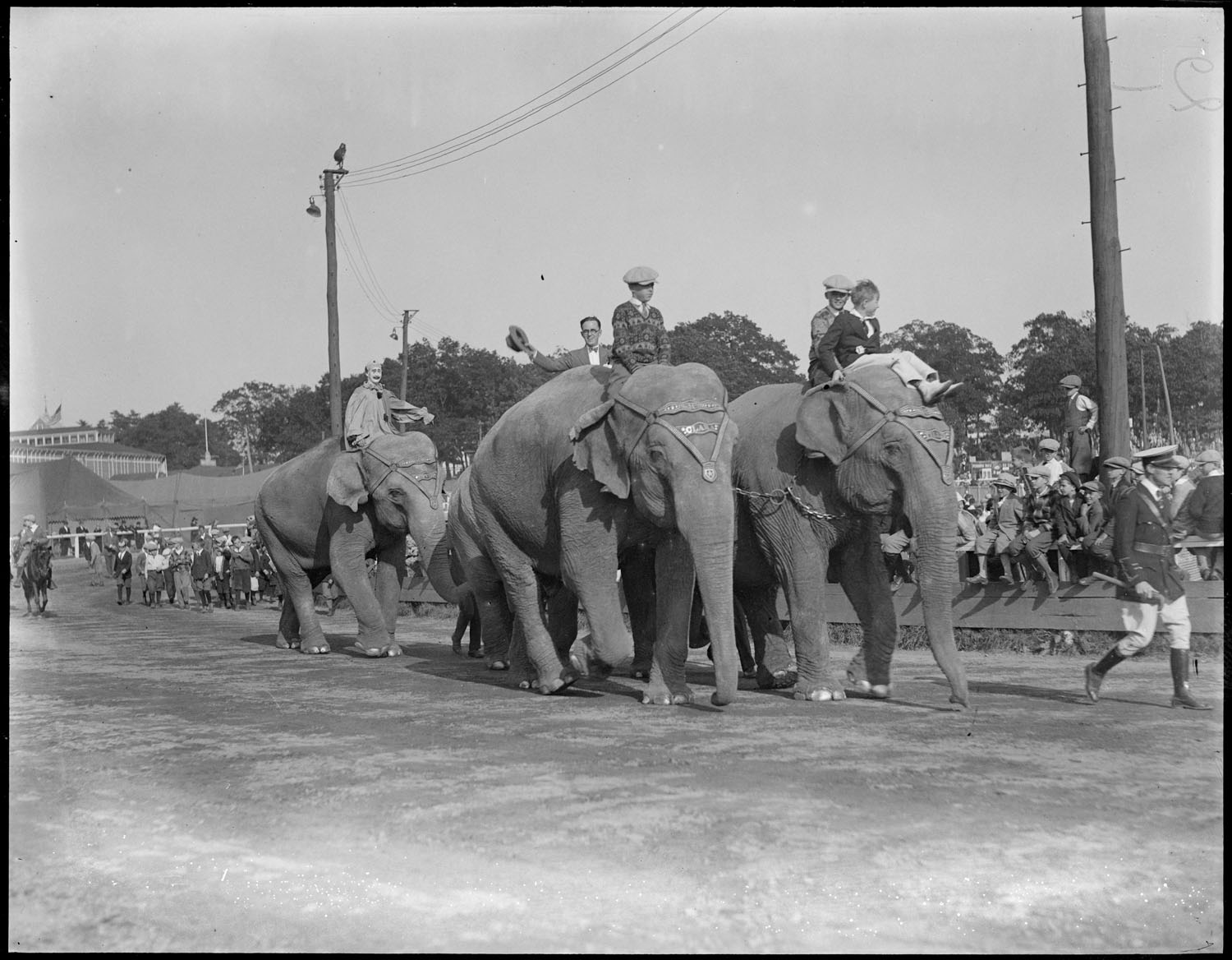 Kiddies' elephants on their way to their new home in Franklin Park zoo. Bought by the children for $6,000.' |