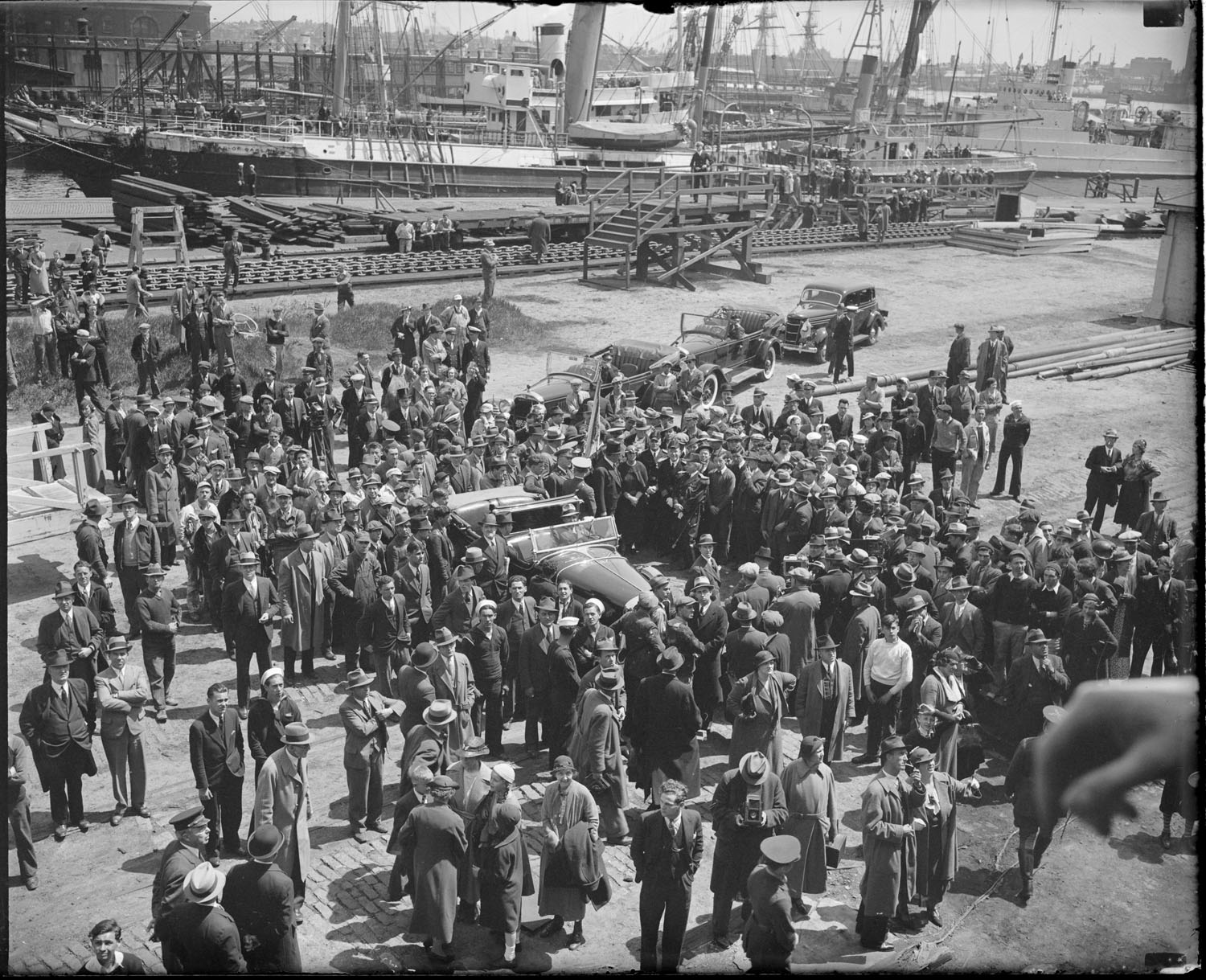 Visitors watch as Commander Byrd's 'Bear of Oakland' prepares for sailing