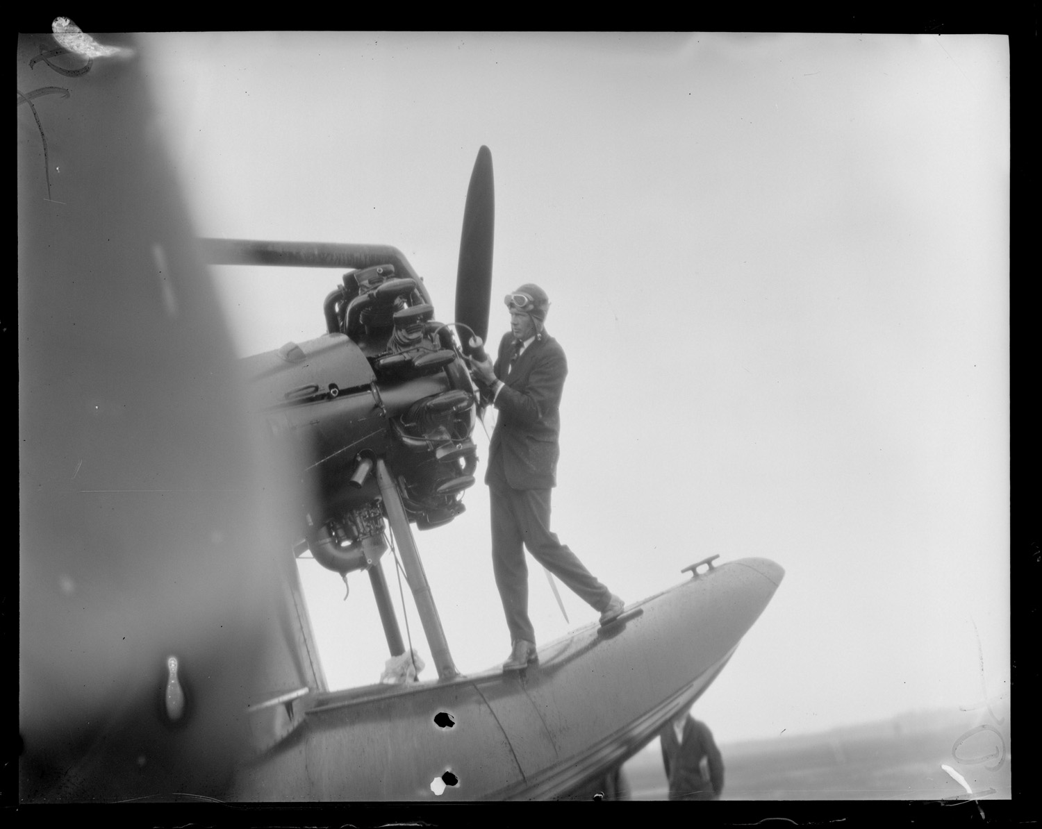 Col. Charles A. Lindbergh on his Loerring Amp. plane at Scarboro Airport, Maine.