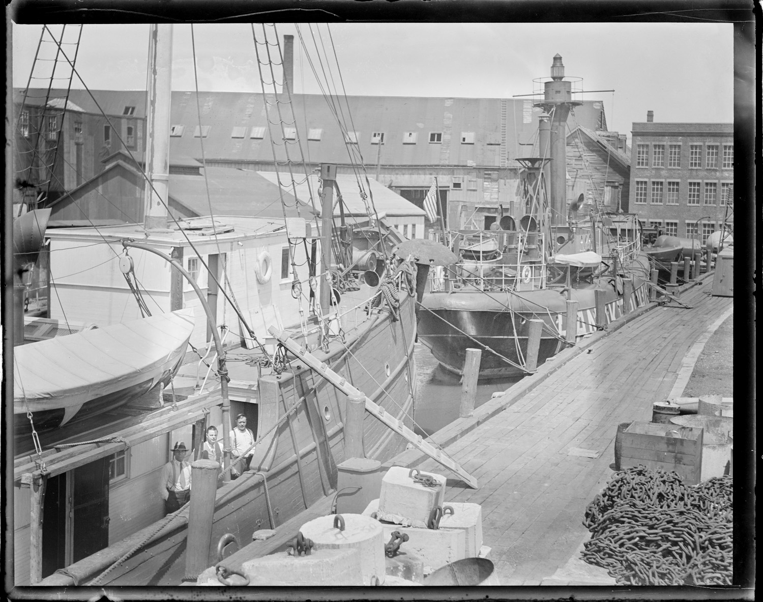 Pleasure fishing boats - old T-Wharf. Excursion steamers: Dorothy Bradford on Right, Newcastle left front, Nahant rear left? King Philip - left middle |