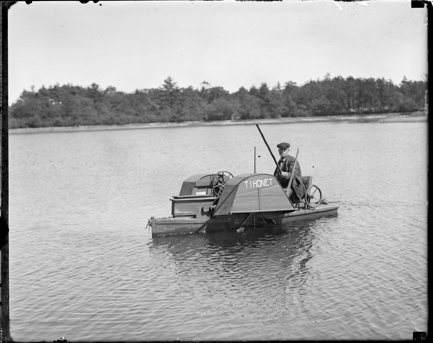 Odd one-man hand powered paddleboat 'Thonet,' Wareham