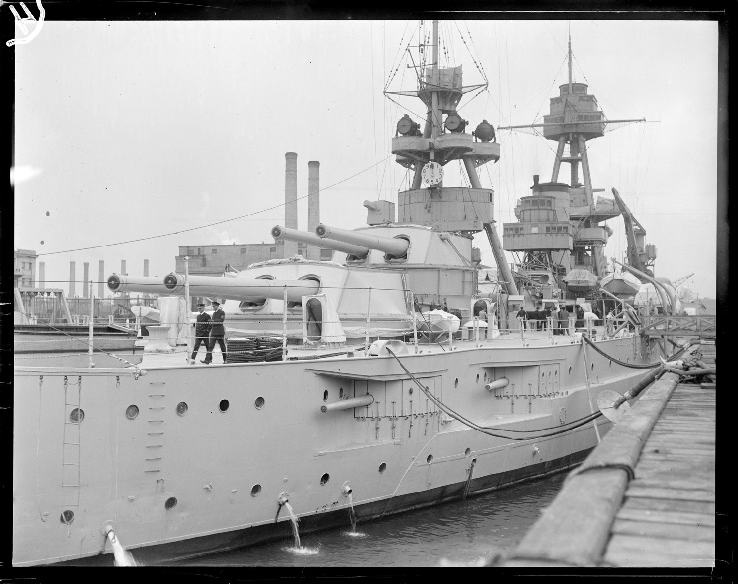 USS Texas. Looking from stern toward bow at South Boston dock, Boston