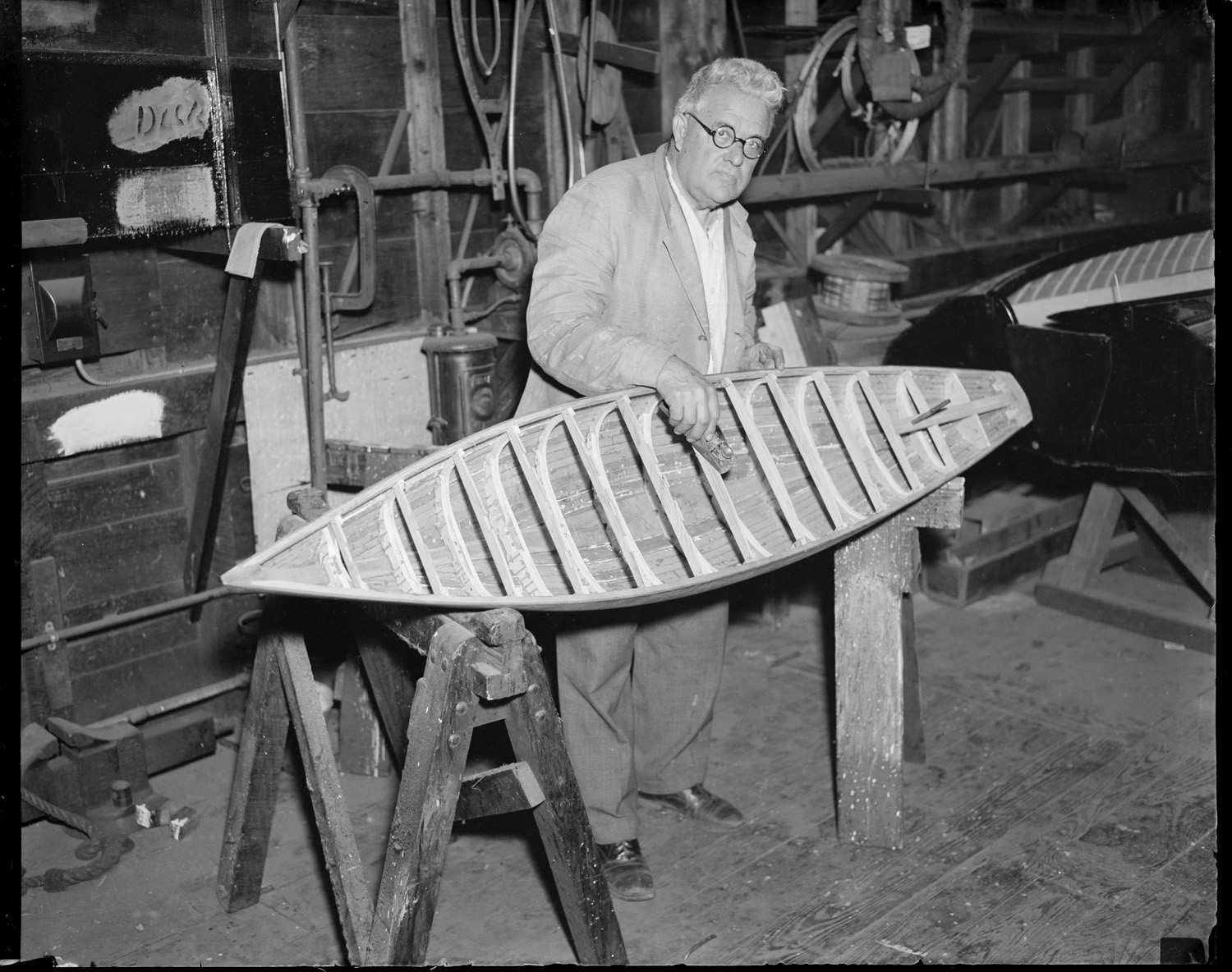 Flat boat (Launching Yacht - Lawleys? Tug boat Neponset)