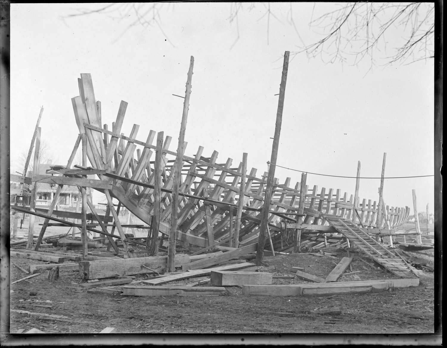 Flat boat (Launching Yacht - Lawleys? Tug boat Neponset)