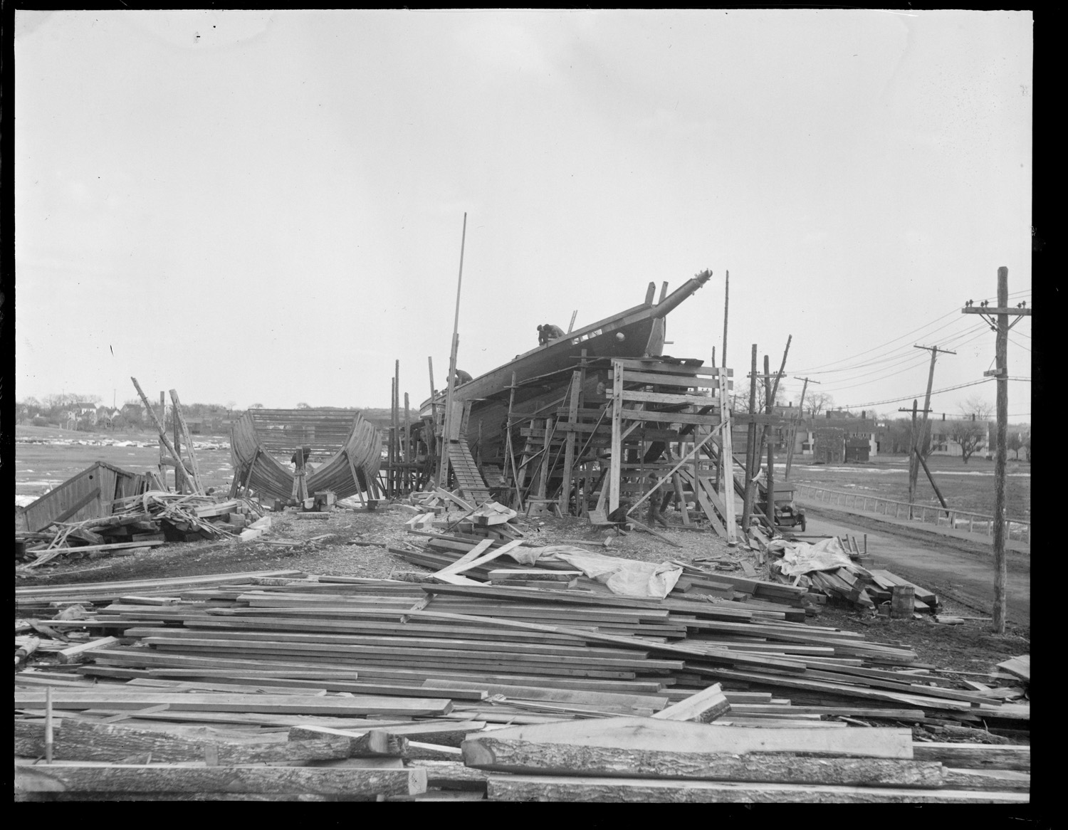 Wooden boat being built