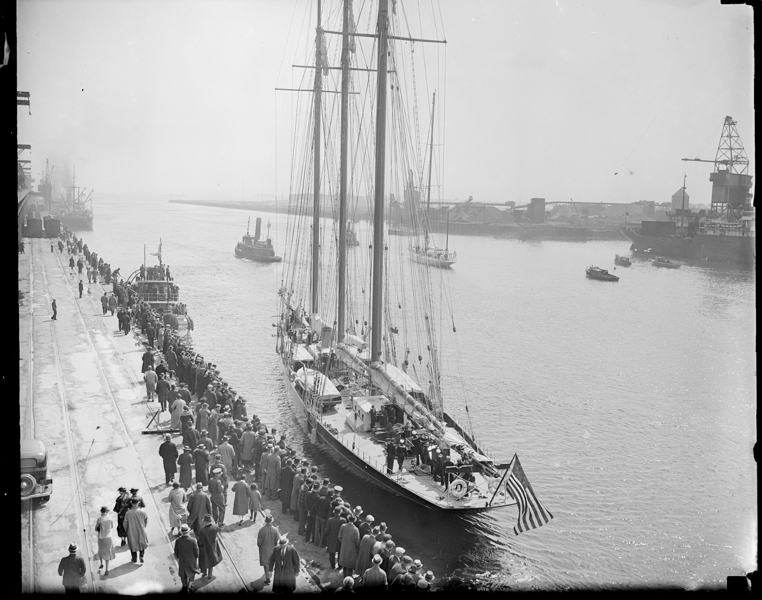 Sir Wilfred T. Grenfell's schooner 'George B. Cluett' leaves with college crew.