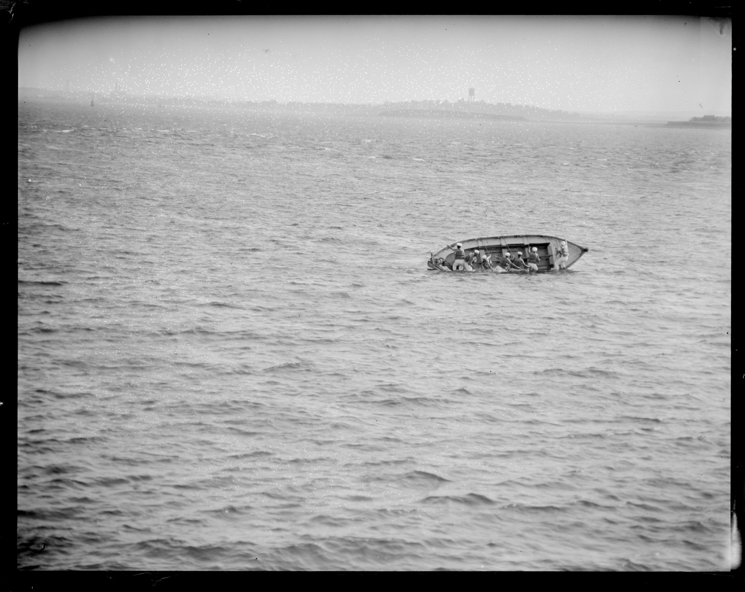 Coast Guard men capsize boat to see how it is done to the Chamber of Commerce