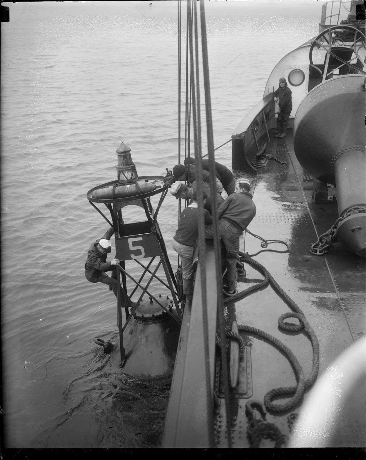 Removing damaged rudder of UCSG #15 Manachan at Navy Yard.