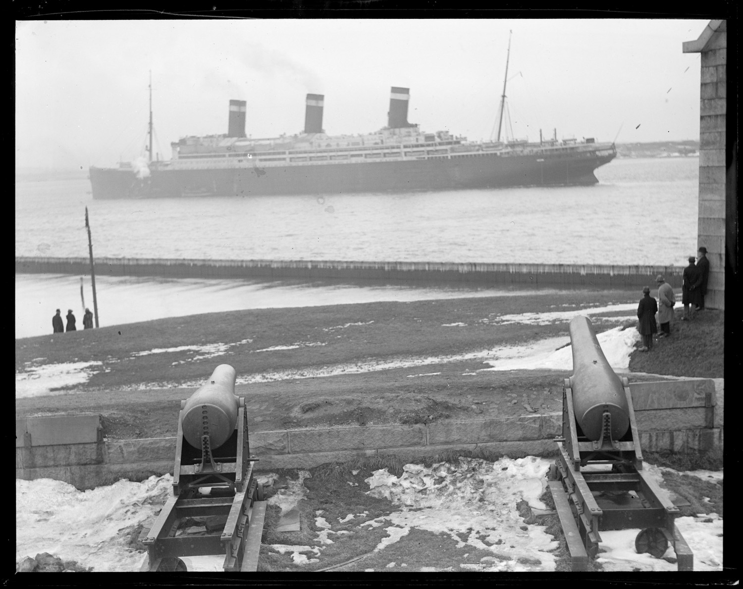 SS Leviathan going into dry dock from Fort Independence, Castle Island, Boston.