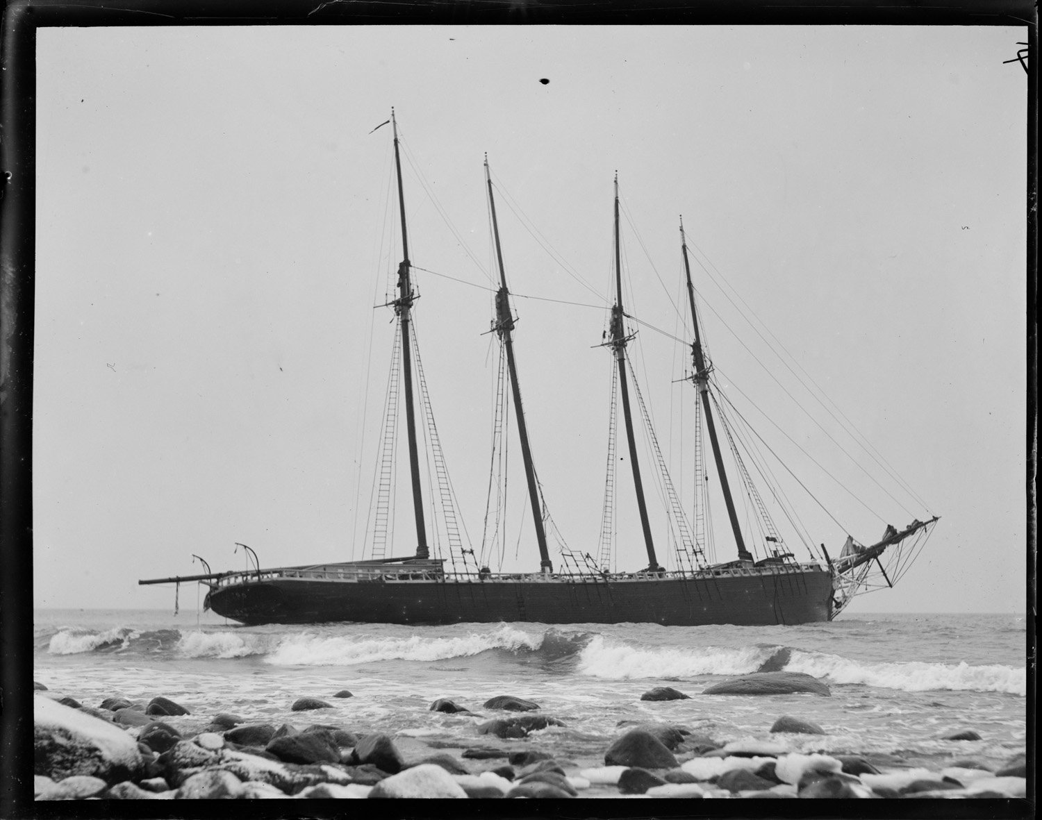 Bow of 'Nantasket' after ramming schooner 'Isabelle Parker' off Gallops Island in Boston Harbor. |