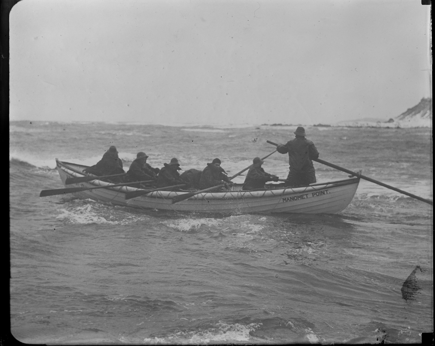 Brave Manomet life savers off to do their duty. 3 of 8 did not return.
