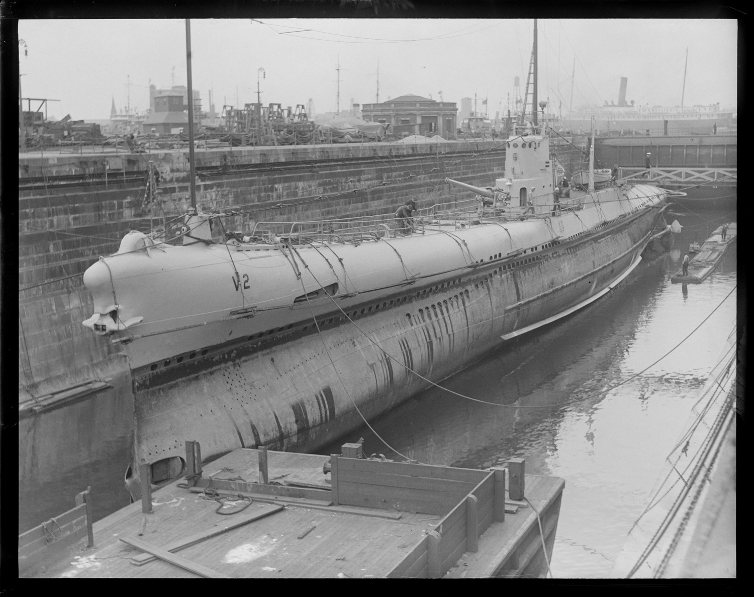 Sub S-8 at the Navy Yard after standing by S-4 off Provincetown when she was rammed and sent to the bottom by USS Paulding