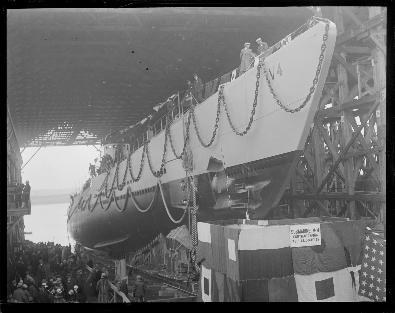 Largest sub the V-4 being launched in Portsmouth, NH.