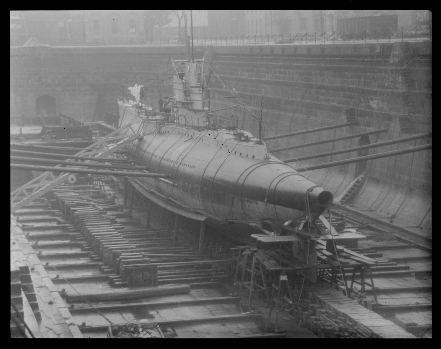 Drydock filling with water to float the S-4 that has been inflated and repaired.