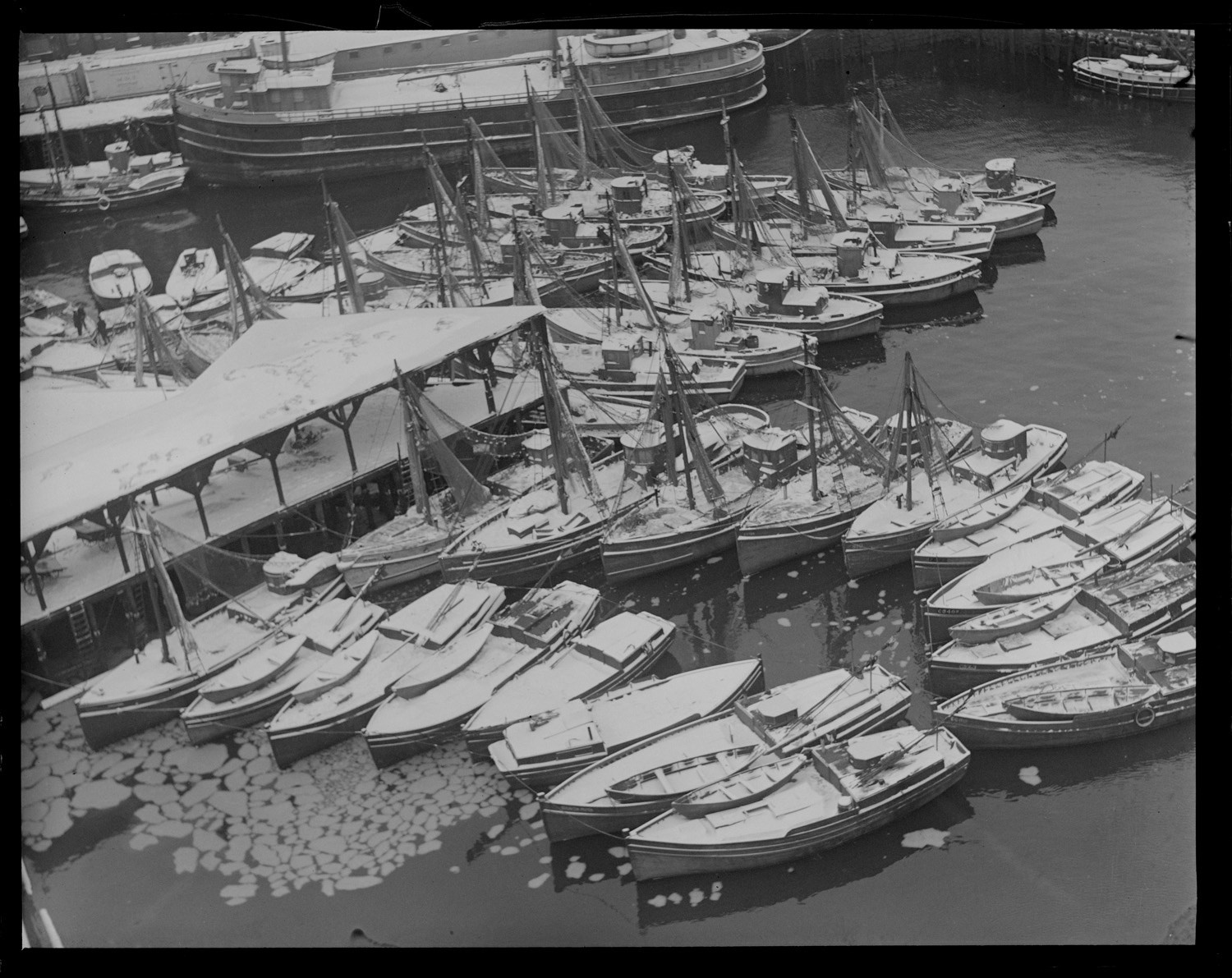Italian fishermen tied up at Old T-wharf on account of storm.