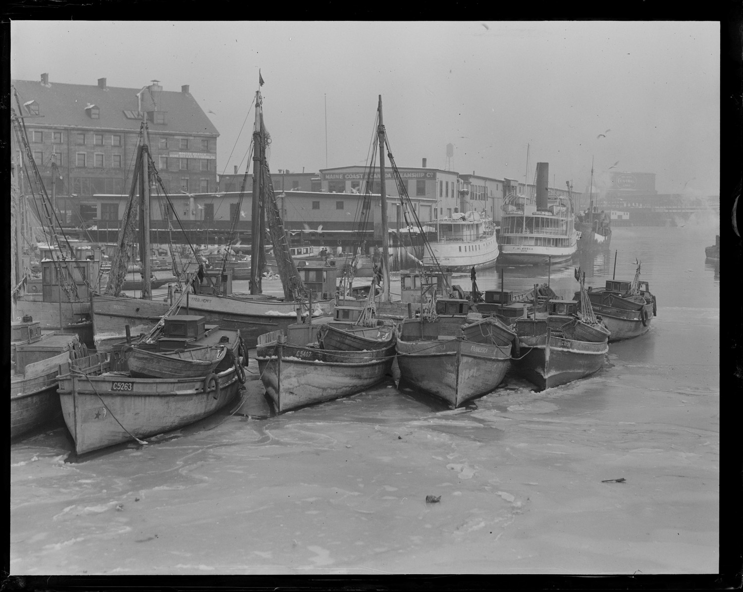 Italian fishing fleet ice in at T-wharf.