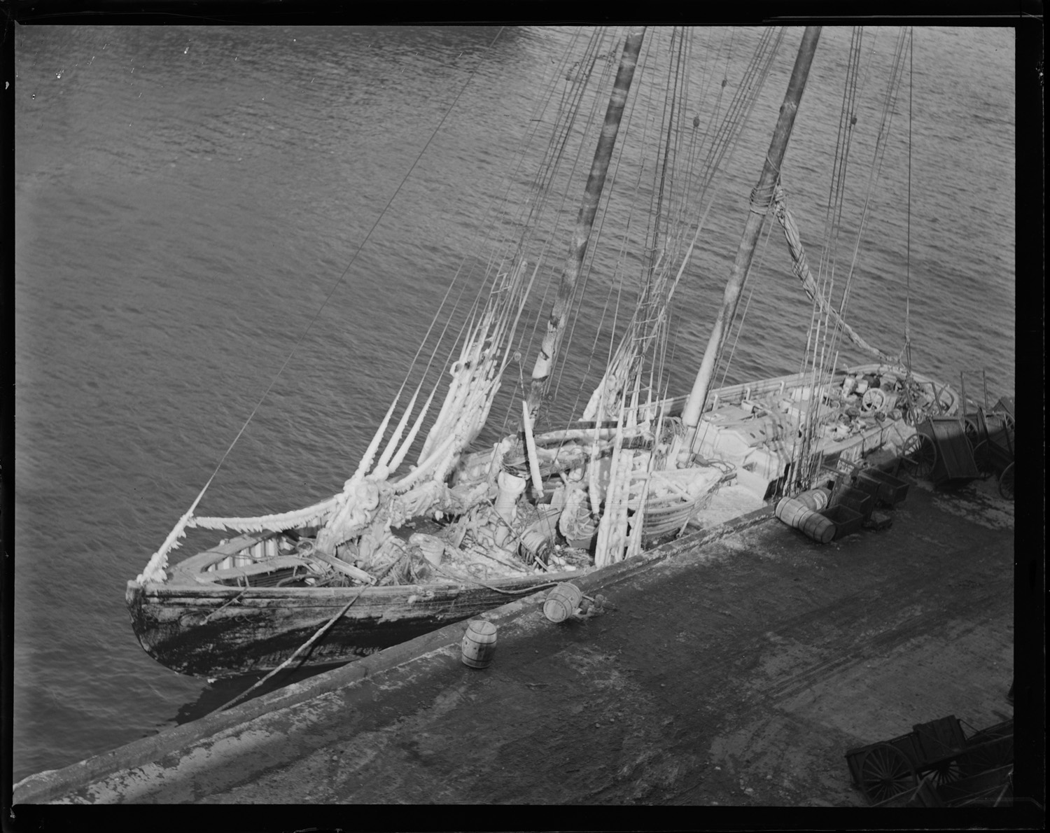 Fishing schooner 'Gov. Fuller' ice clad at fish pier