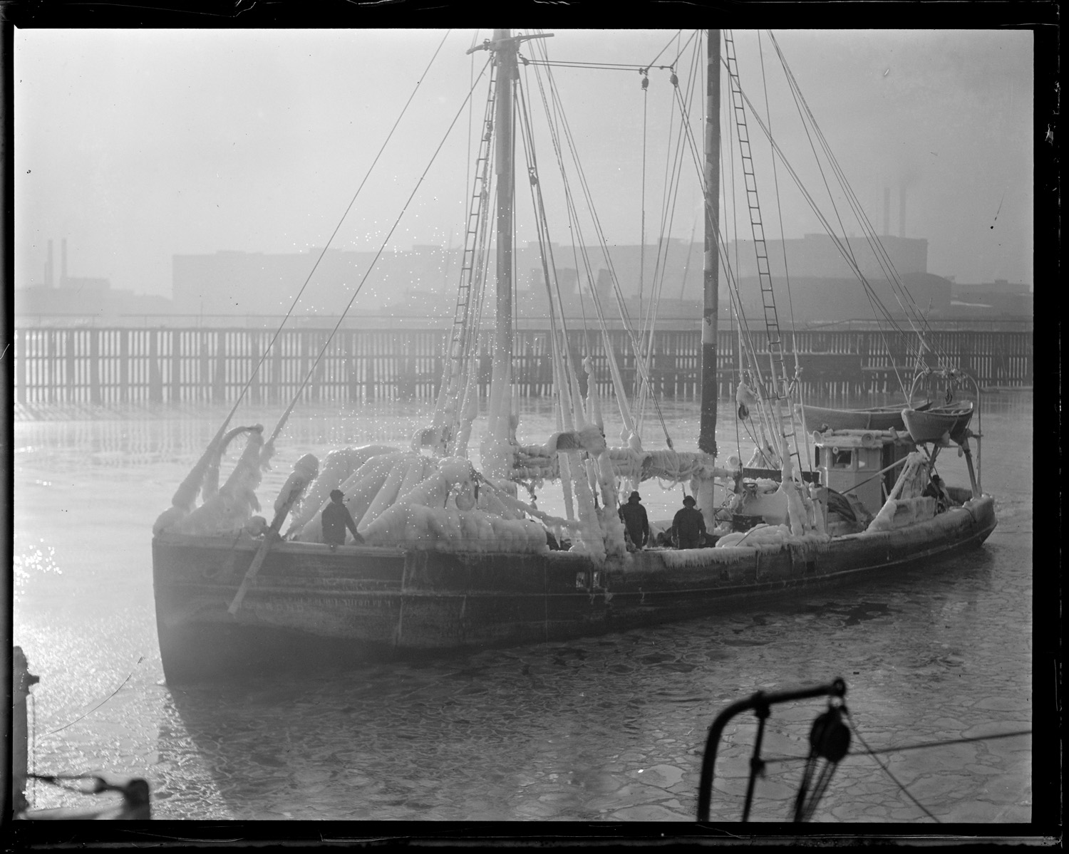Fishing schooner 'Edith and Eleanor' covered with ice.