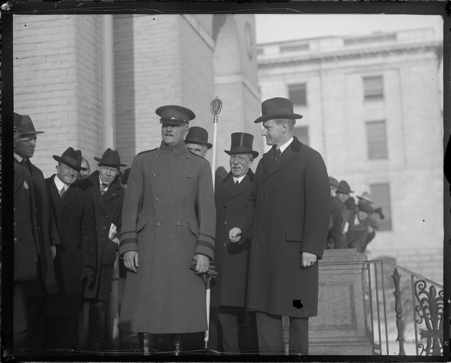 Gov. Coolidge and Black Jack Pershing outside the State House