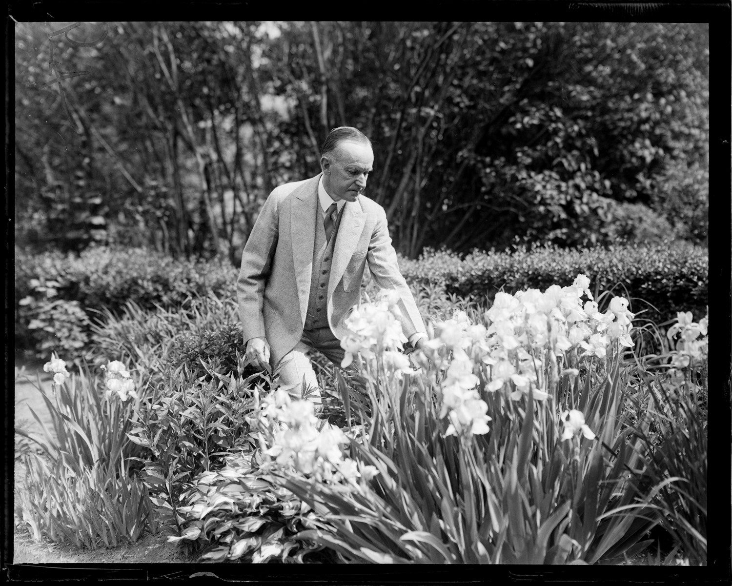 Ex Pres. Coolidge inspects garden in new home in Northampton