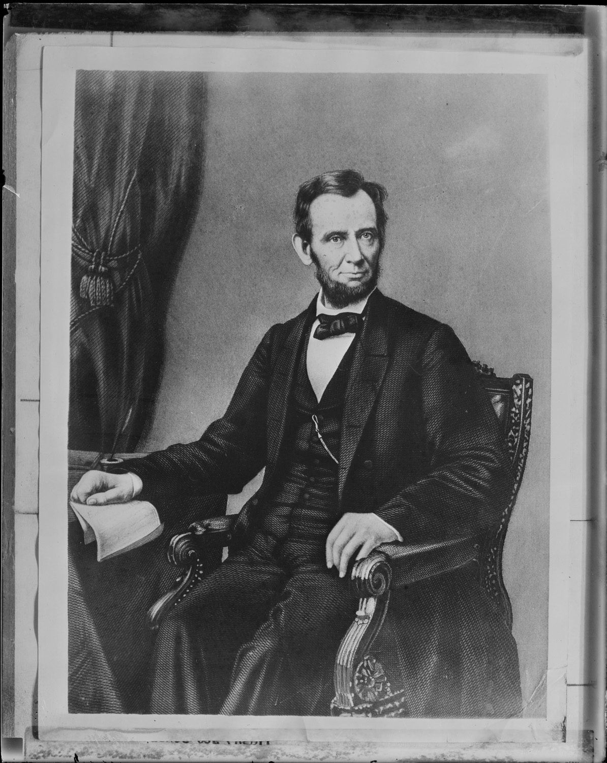 Abe Lincoln holding volume 'Liberty and Rights for All'