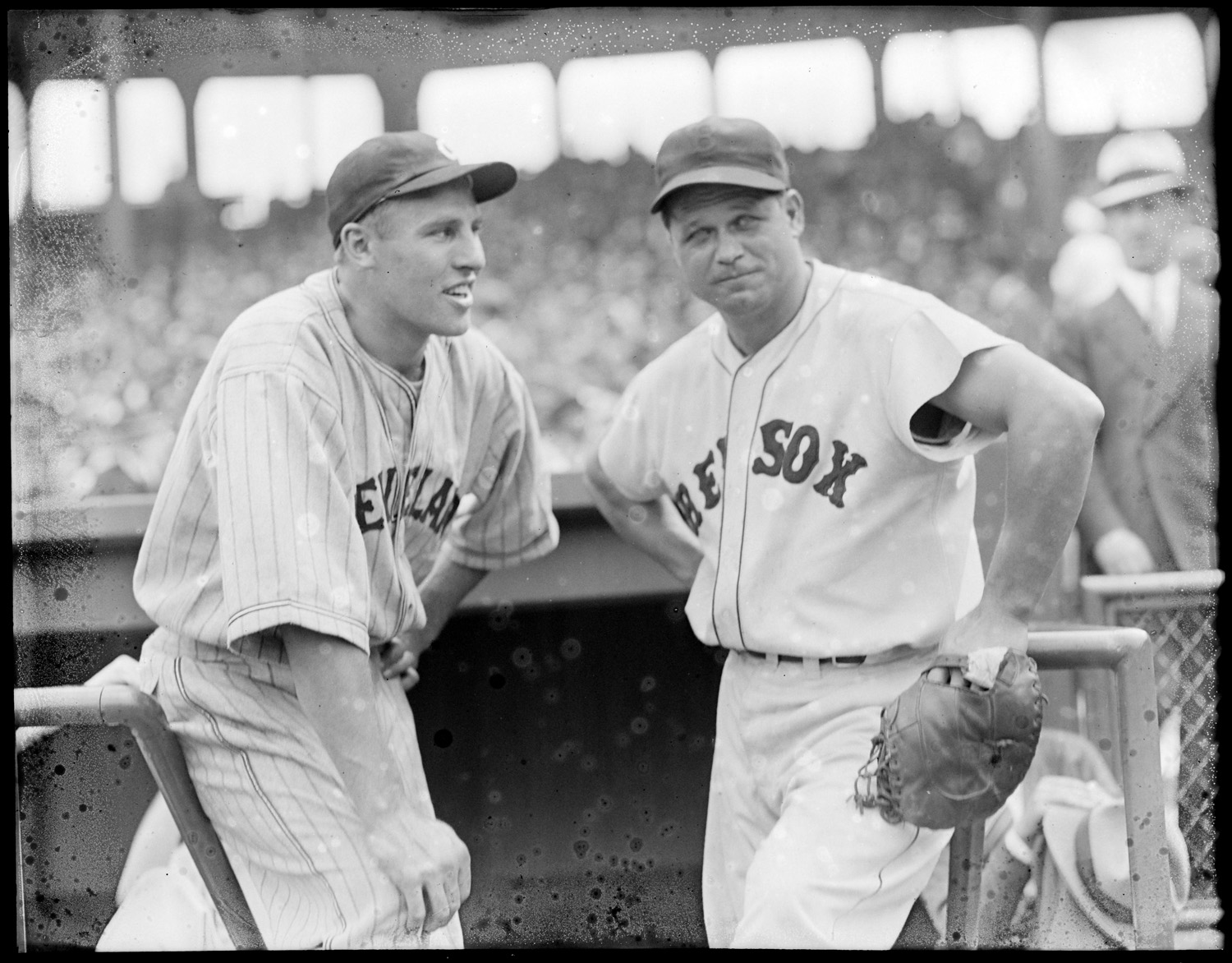 Red Sox manager Joe Cronin and Cleveland Indian manager Walter Johnson at Fenway
