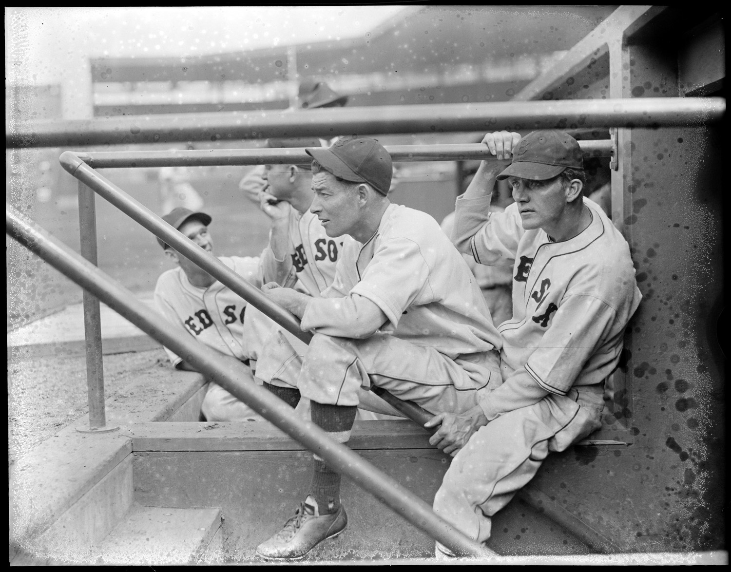 Red Sox players in dugout, Fenway Park