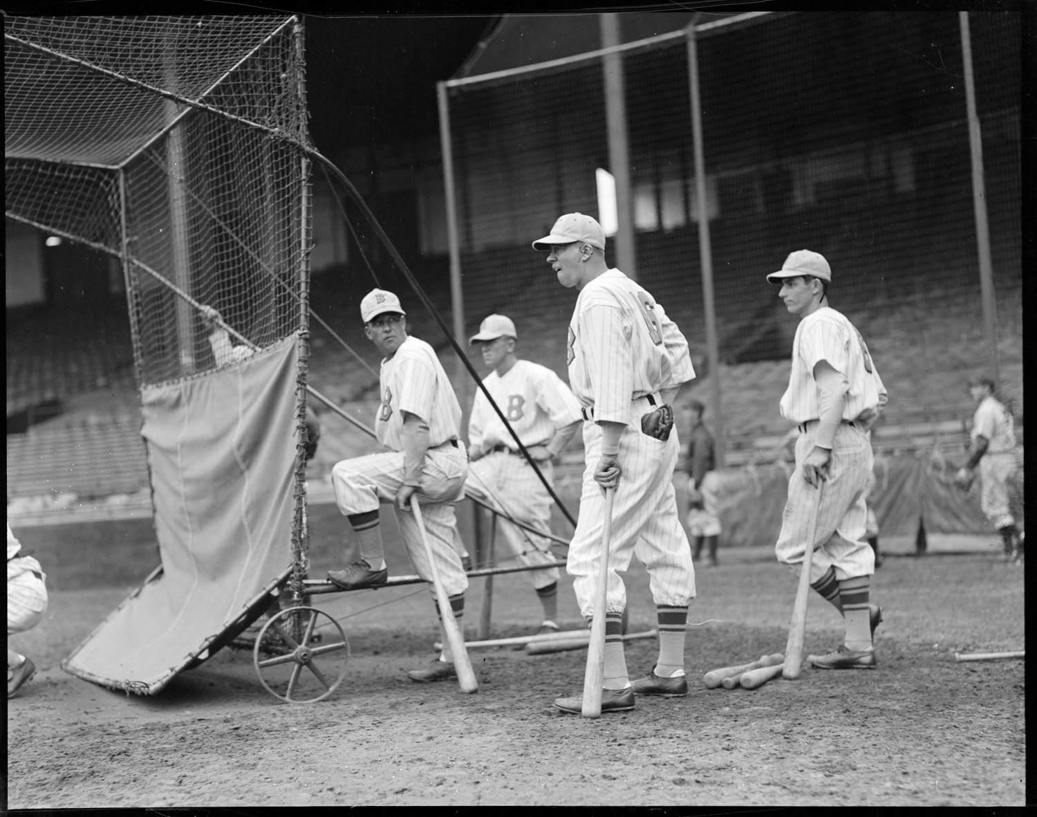 Boston Bees players sitting on dugout, Braves field
