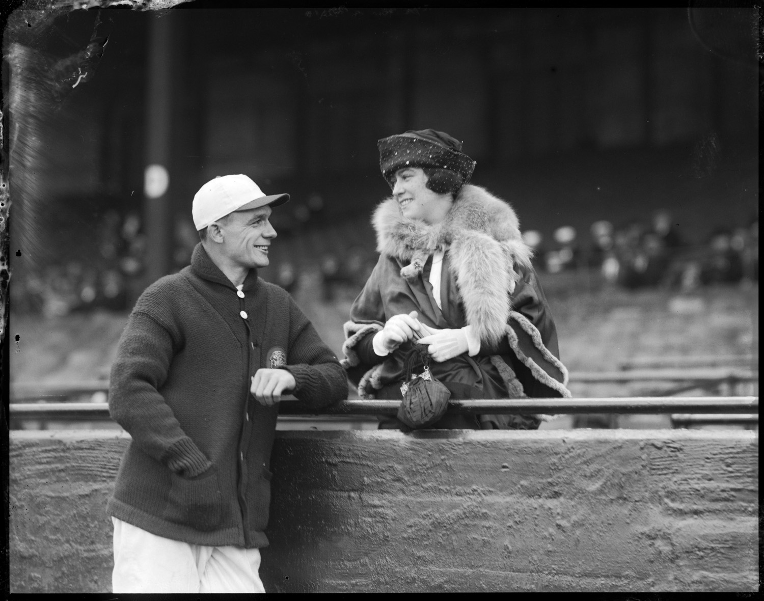 Braves player talks to woman in stands, Braves field |