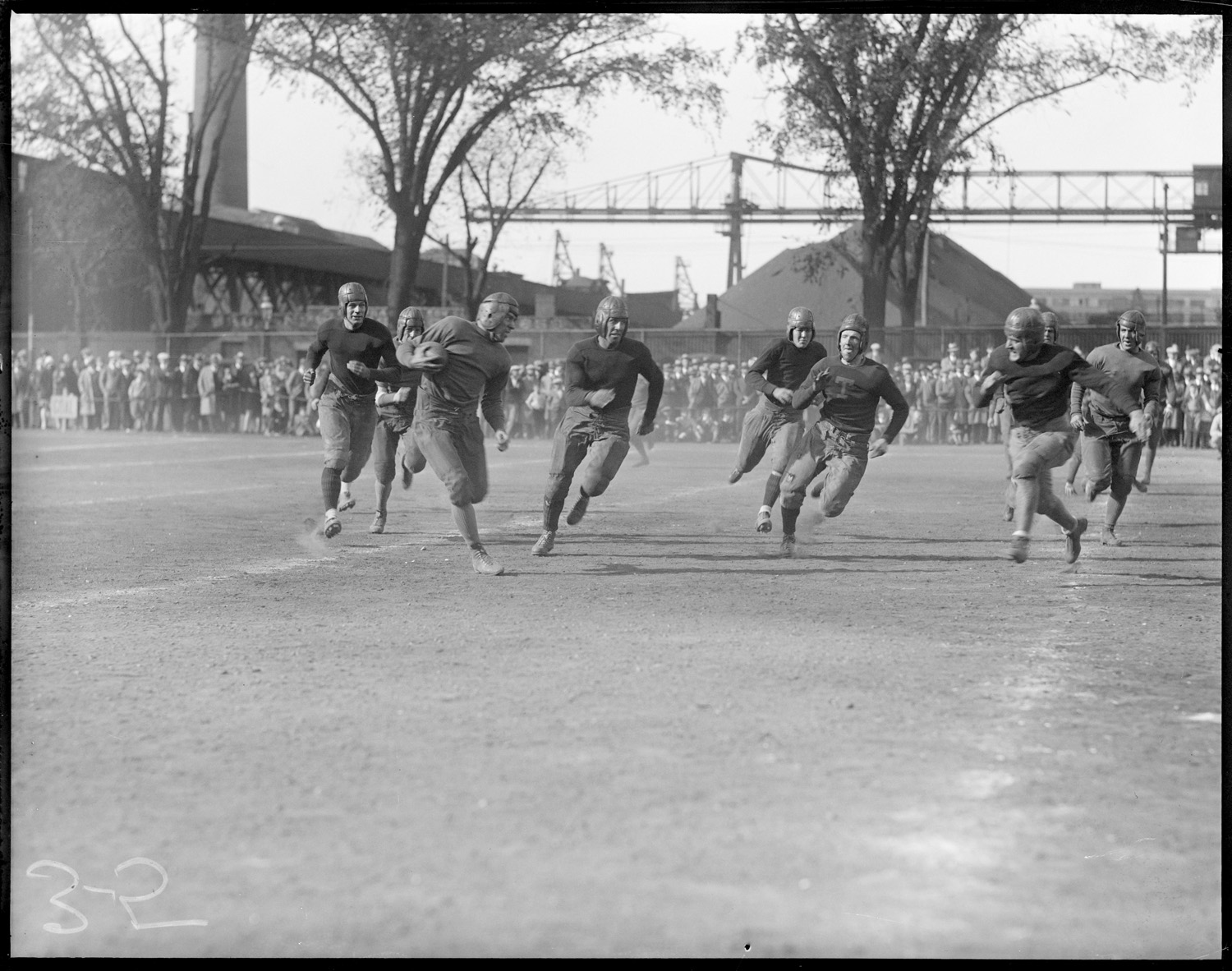 Christopher Lee playground, South Boston; Higgins of Pere Marquette with ball in game against Quincy Trojans. P.M. won 12-0.