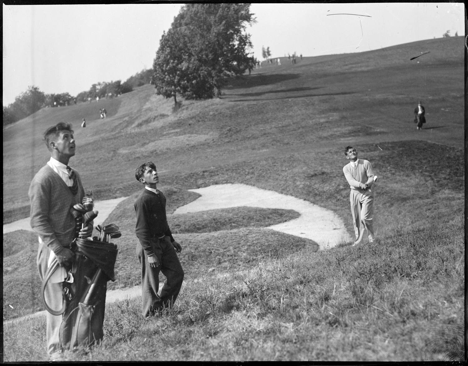 Francis Ouimet hitting out of a sand trap at Winchester golf club