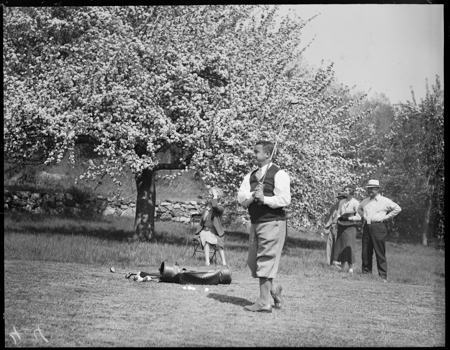 Francis Ouimet hitting out of a sand trap at Winchester golf club