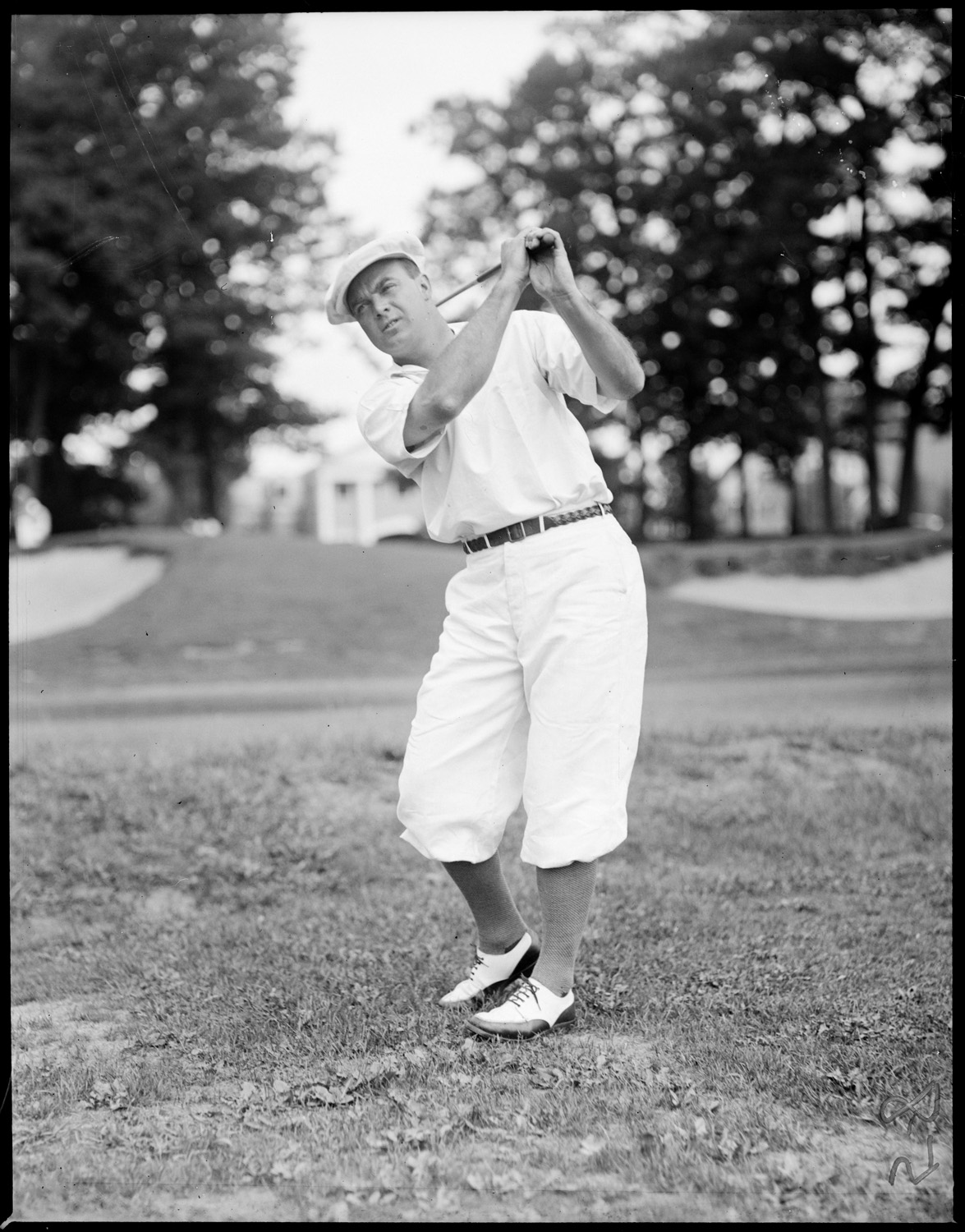 Francis Ouimet hitting out of a sand trap at Winchester golf club |