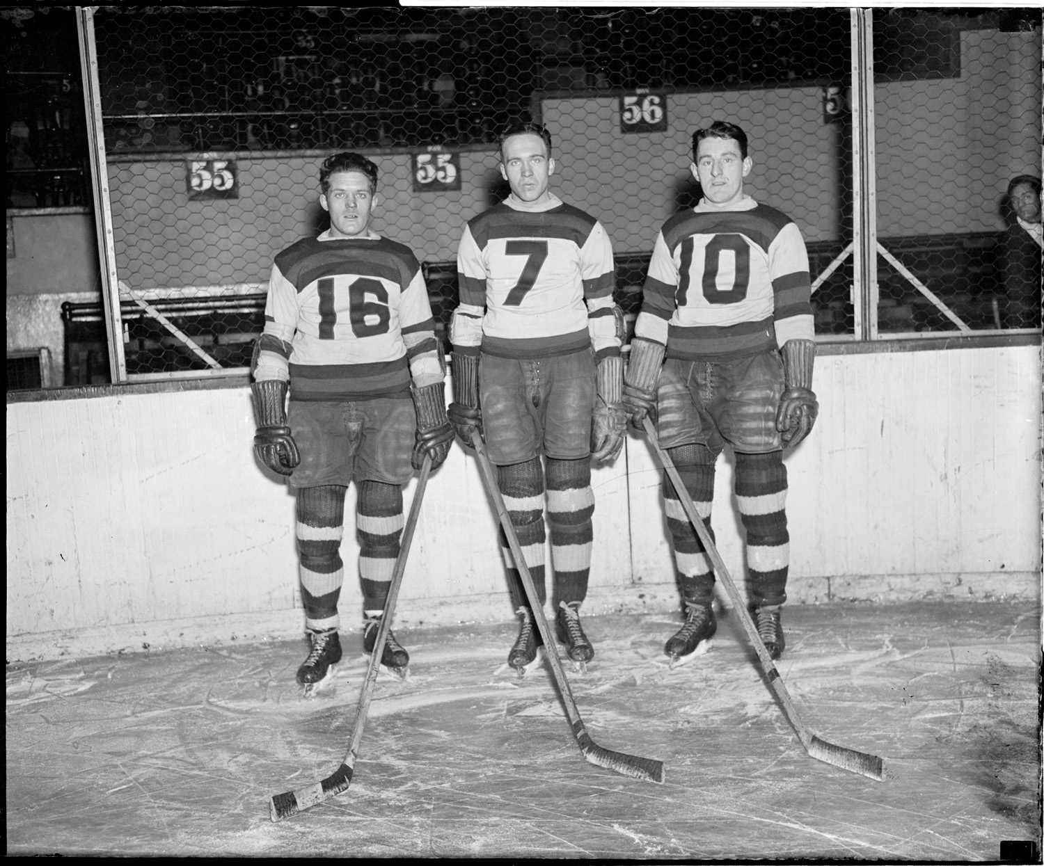 Phil Besler, Alex Motter, and Jerry Shannon of the Bruins, 1935-1936