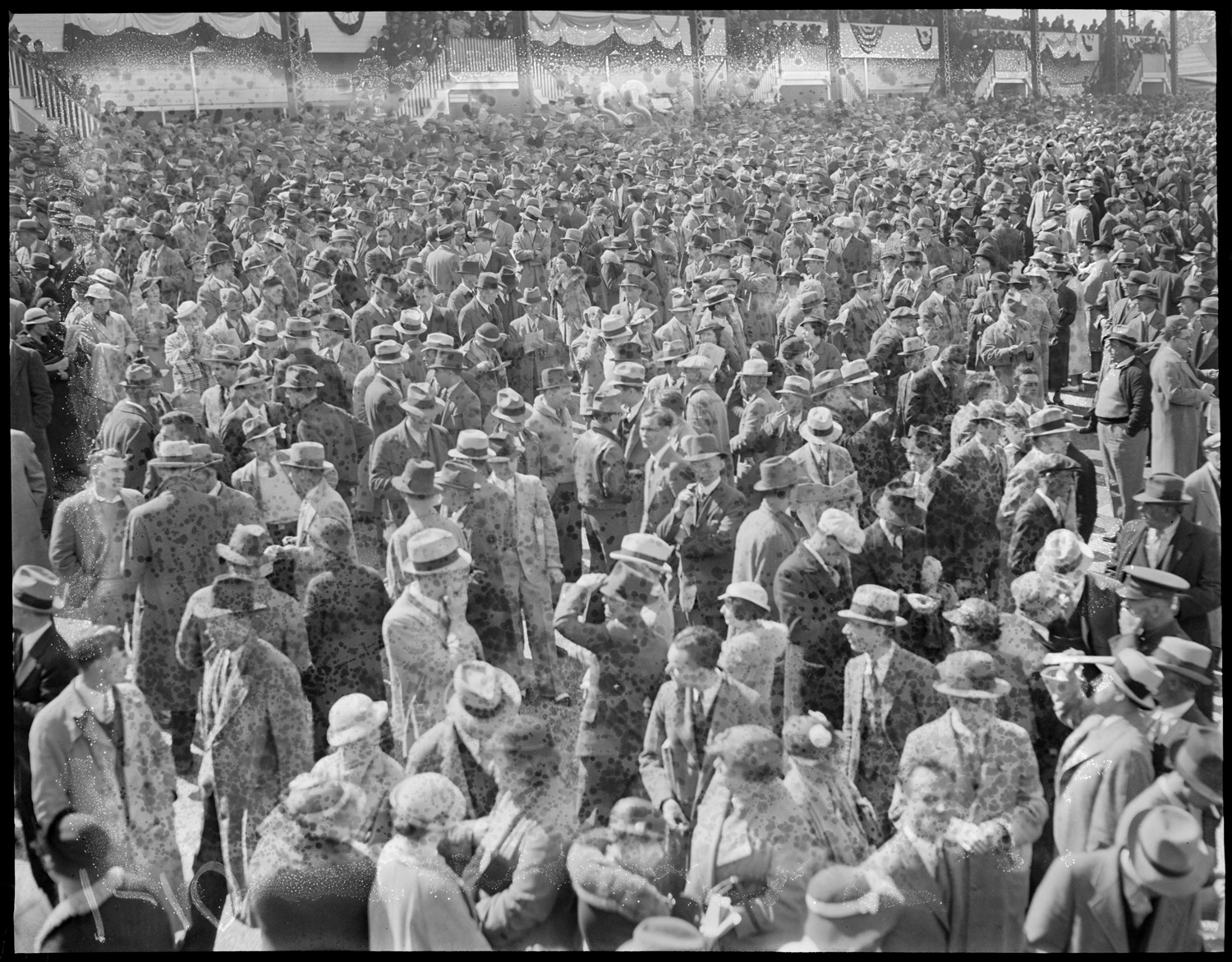 Crowds arriving at Rockingham Track by train, Salem, N.H.