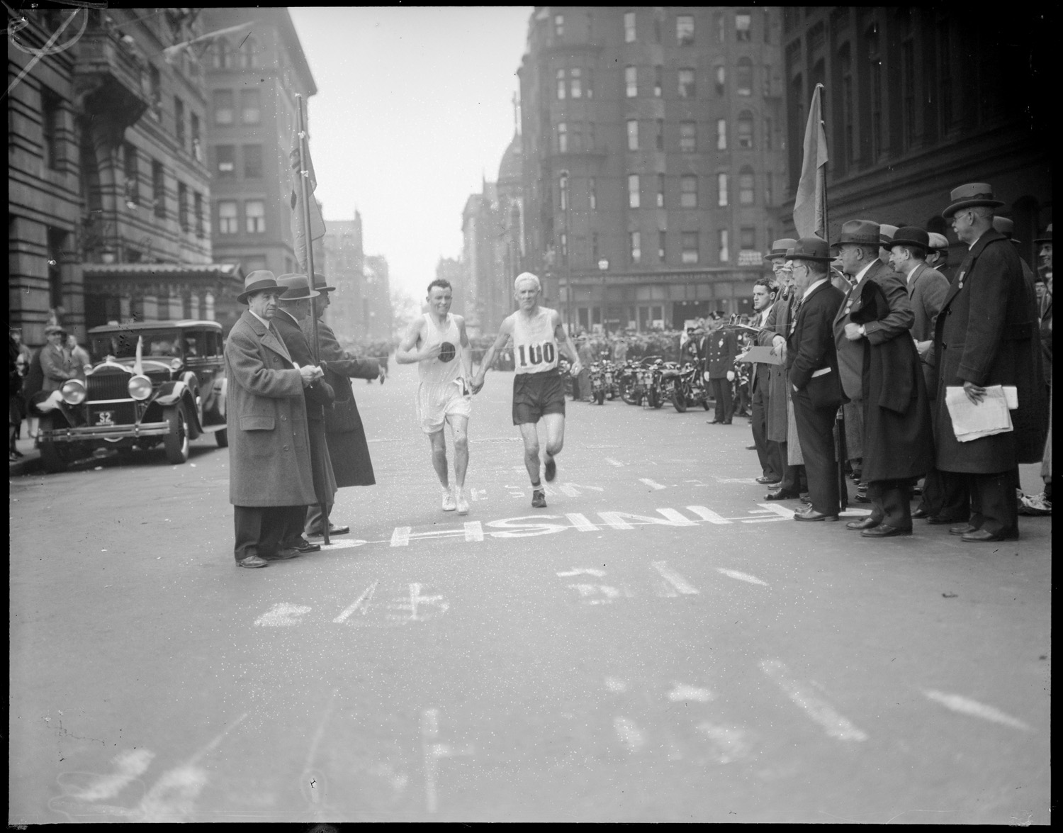 B.A.A. marathon runners Hans Oldag (11), Ford Clark (99), and Clarence DeMar (157) |