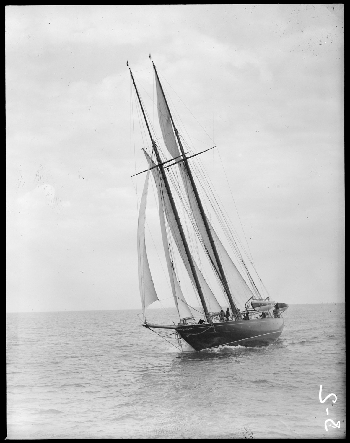 Spectators on the Ambra VI watching N.Y. 40 footers at Marblehead